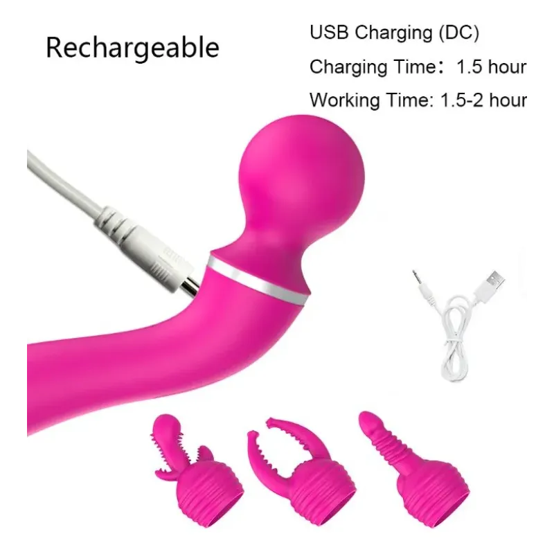 Vibrador Estimulador Clitoris 7 Cabezales Intercambiable Usb Rosa